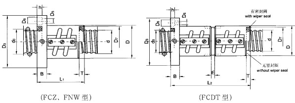 | 外插管凸出式滚珠丝杠副尺寸系列 |